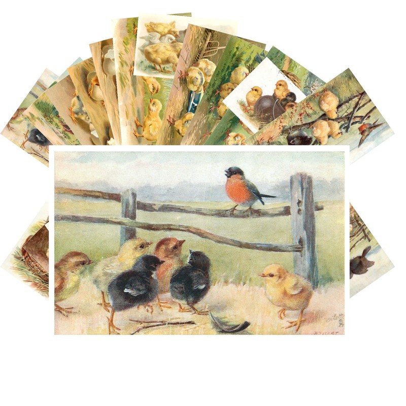 Vintage Easter Greetings Cards 24 pcs Chicks at Easter Rural Retro Postcards ...