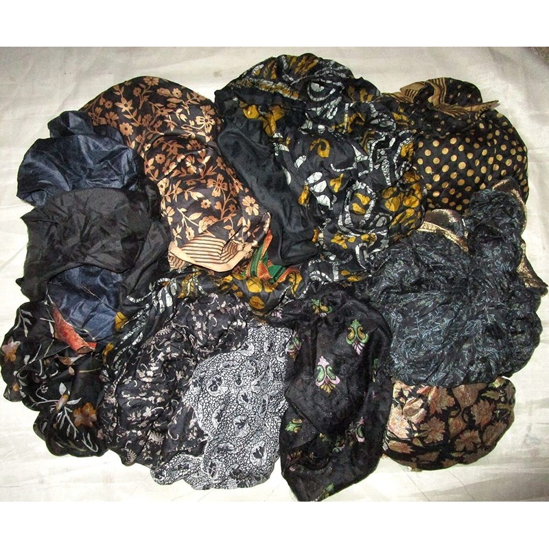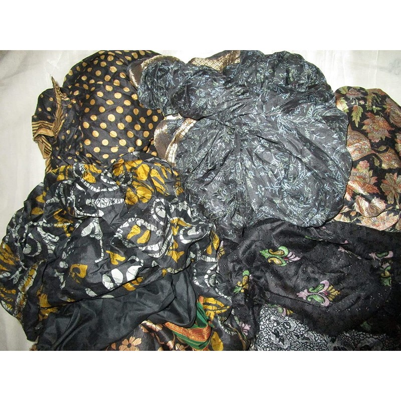 Vintage Fabrics Crafts Sari Silk Fabric Lot Sari Fabric Material Remnant 100 Grams Black Craft Scrapbook Art Doll