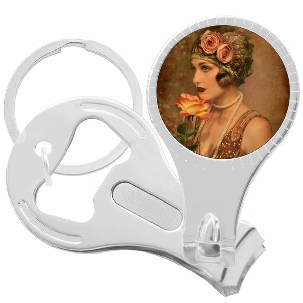 Vintage Flapper Girl Nail Clippers Plus Bottle Opener Keychain
