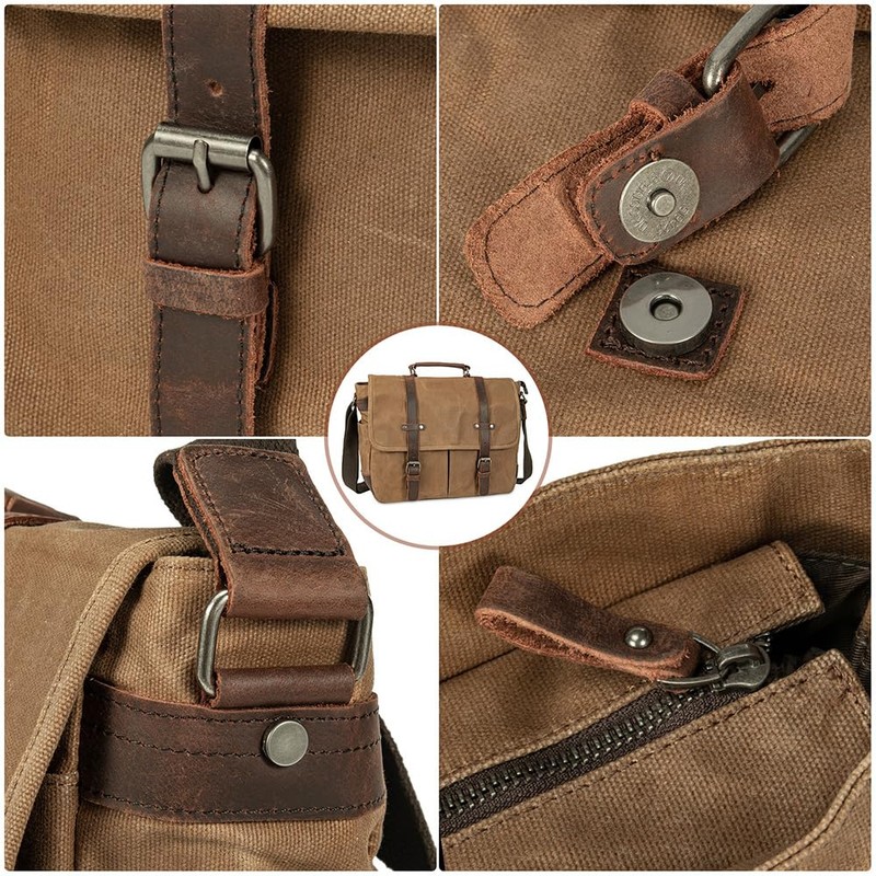 - HIGH-GRADE MATERIALS : Waterproof Waxed Canvas Men's Vintage Genuine Leather Laptop Messenger Bags. martexin original wax canvas + superior cowhide leather+bronze hardware. Durable Leather and adjustable shoulder strap.