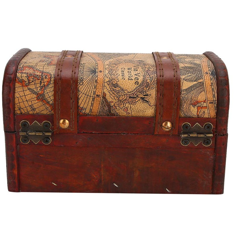 Vintage Jewelry Storage, Treasure Chest Case Wooden Box Organizer Container Case Anniversary Wedding (Map Trumpet)