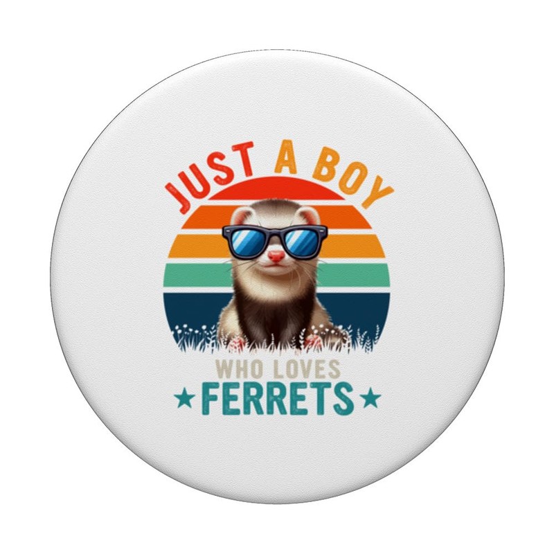 Vintage Retro A Boy Loves Ferrets Animal Sunglasses Lover PopSockets with Interchangeable PopGrip