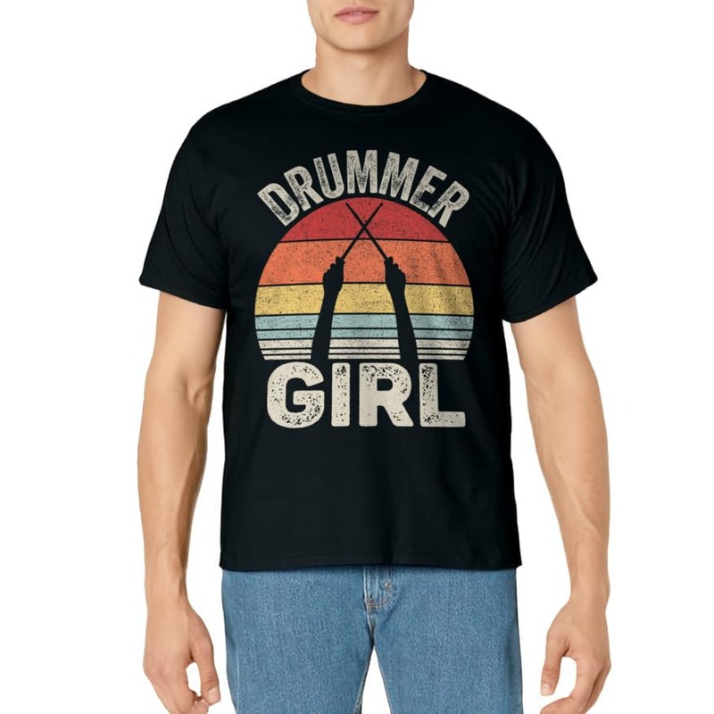 - If you love expressing your uniqueness, this Drummer Girl t-shirt is for you. With a vintage, retro-themed design inspired by the iconic fashions of the 60s and 70s, this tee is sure to keep you looking stylish for decades to come