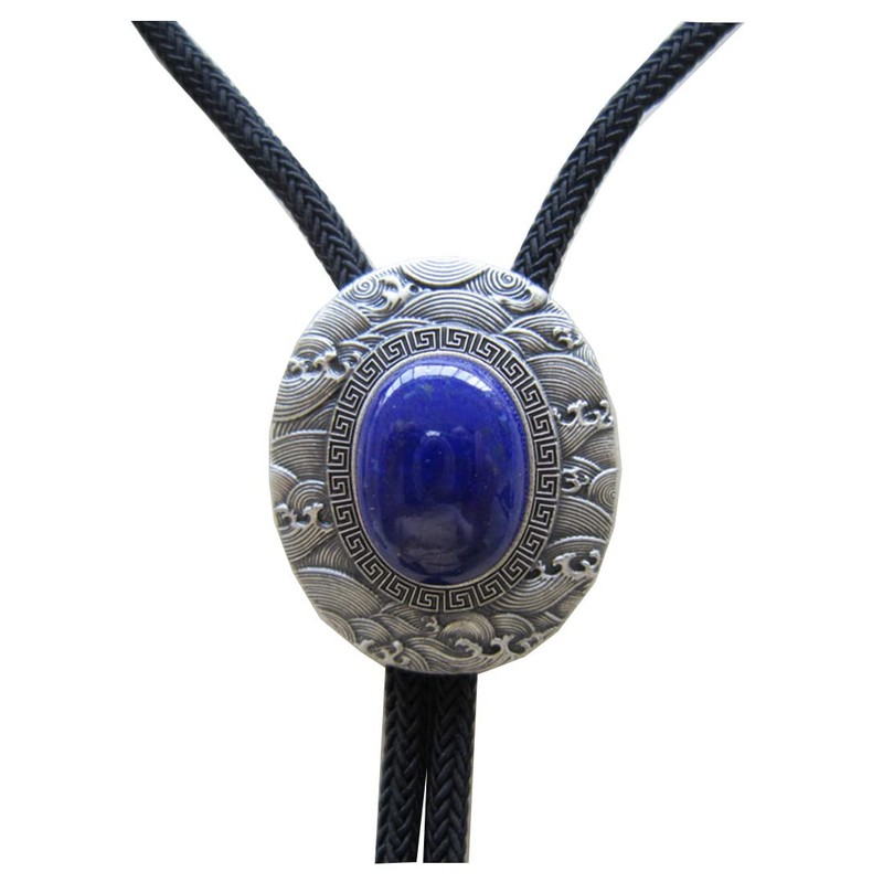 Vintage Silver Plated Handcraft Lapis lazuli Stone Ukiyo-e Oval Bolo Tie