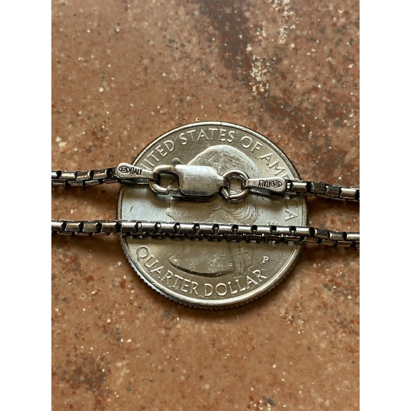 Vintage Solid 925 Sterling Silver Rounded Box Chain 2mm Necklace Black Oxidized Rhodium - 24"