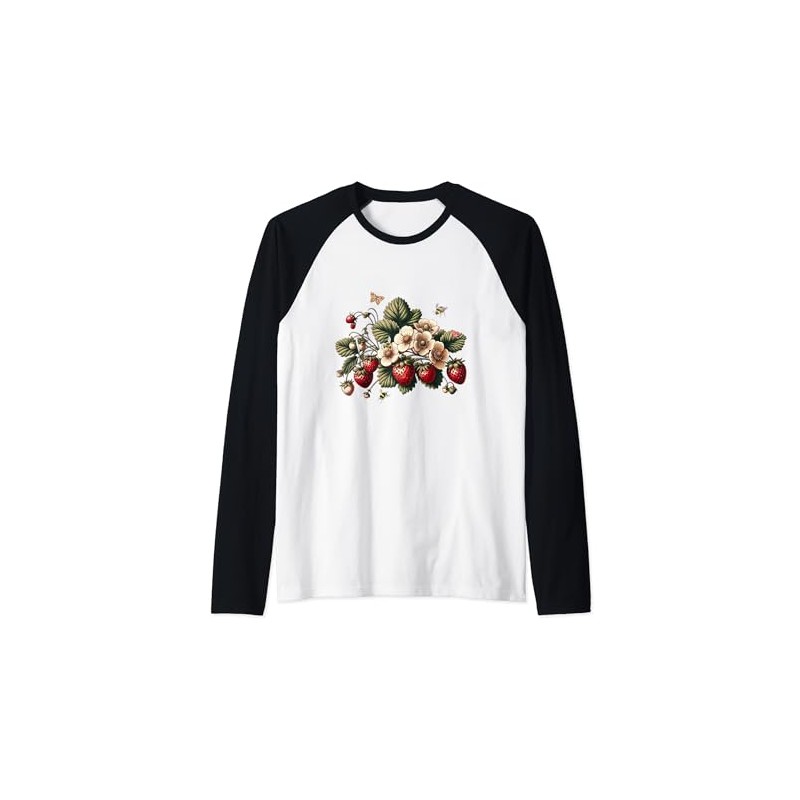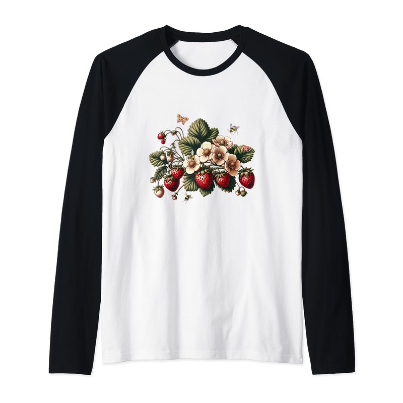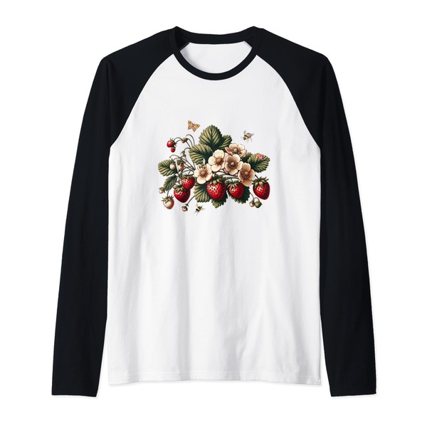 Vintage Strawberries With Bees Ladybug Butterfly Strawberry Raglan Baseball Tee