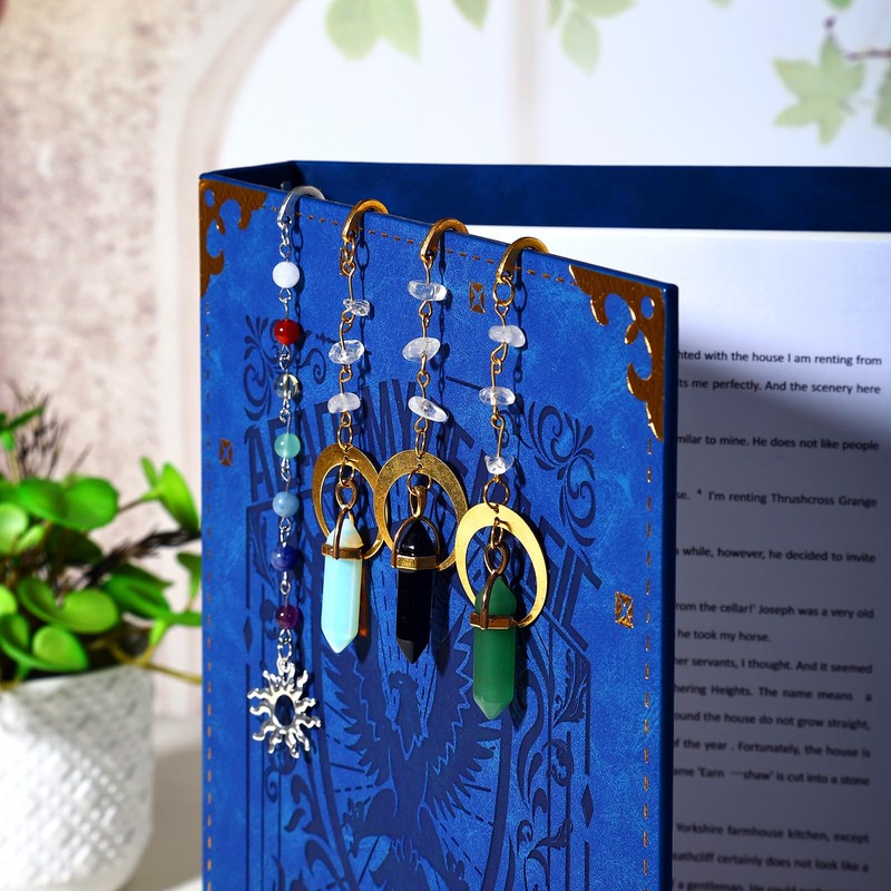 Enhance your reading experience with our Vintage Pendant Metal Hook Bookmark with Natural Crystal Stones and Glass Bead Chain. Designed for book lovers and crafted with care, this bookmark combines a vintage metal hook with the natural beauty of crystal stones and a delicate glass bead chain. The result is a charming and practical accessory that makes any book or journal feel extra special. The natural crystal stones add a grounding, earthy quality, making this bookmark a perfect fit for those who appreciate both nature and timeless design. Whether youโ€™re marking your spot in a novel or using it in a planner, the elegant craftsmanship of this bookmark offers a luxurious reading experience. This vintage-inspired bookmark is not only functional but also a beautiful gift for book lovers, teachers, and anyone who enjoys adding a personal touch to their reading routine. Its sturdy yet lightweight design ensures that it will last for years, while the thoughtful details make it an ideal gift for any occasion. Celebrate the love of reading with this unique, handcrafted accessory!