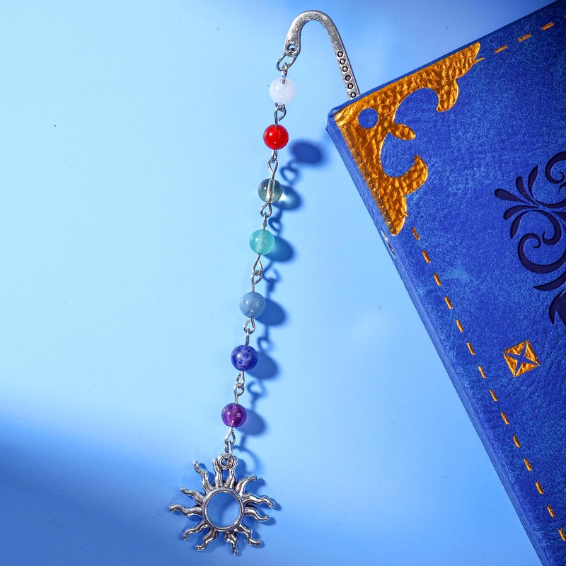 Vintage Sunshing Bookmark Pendant Metal Hook with Natural Crystal Stones and Glass Bead Chain โ€“ Elegant Book Marks for Women, Men, Book Lovers, Girls and Teachers Bookmarks Clip(Chakela)