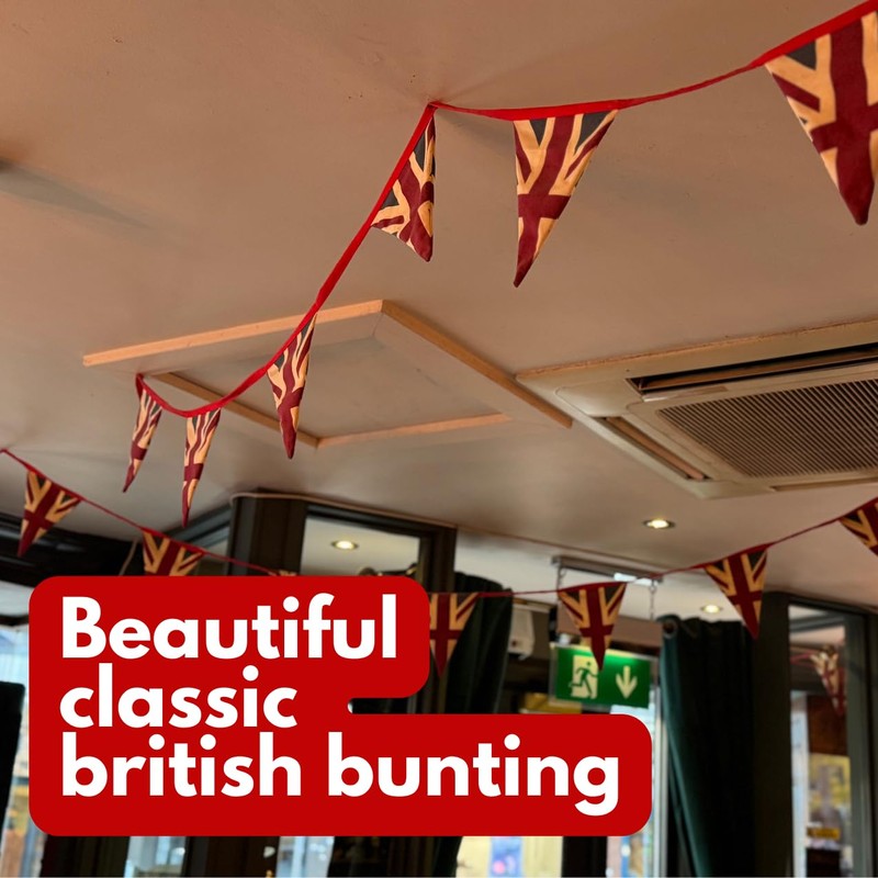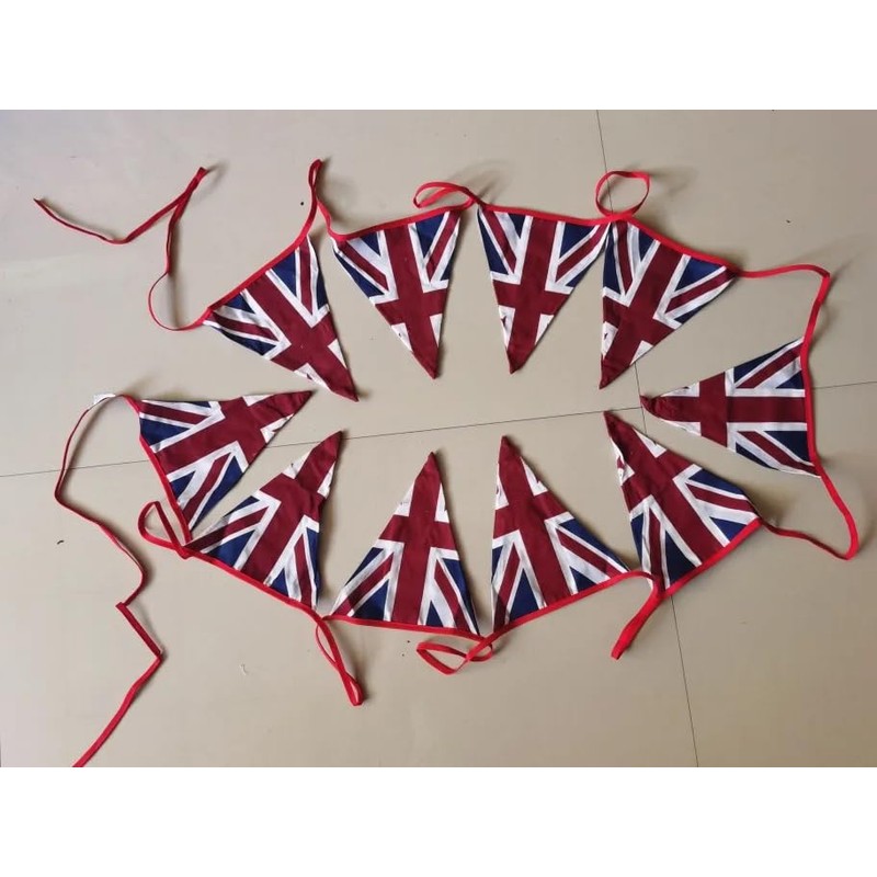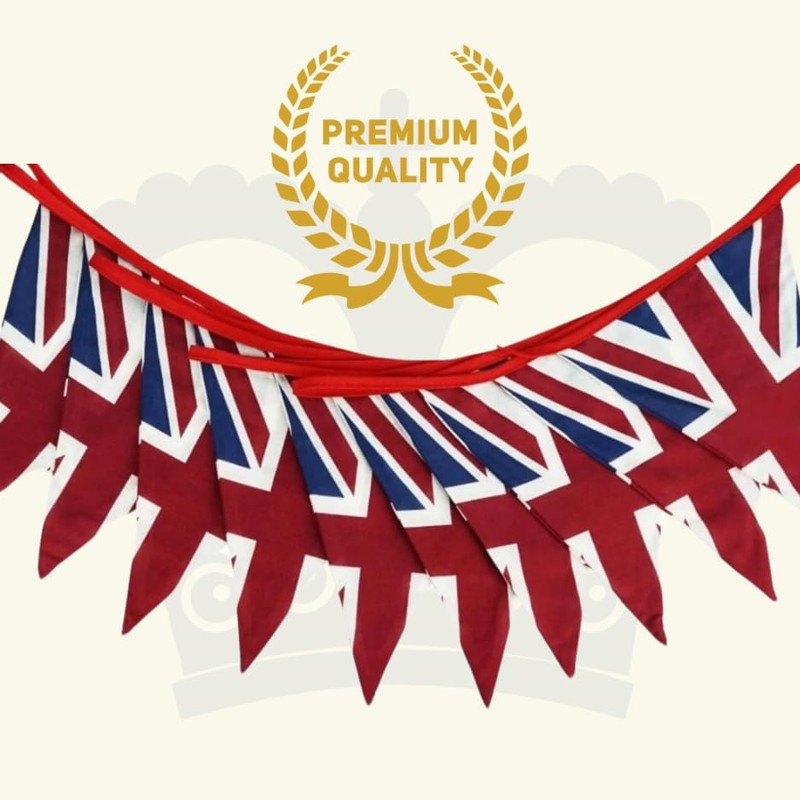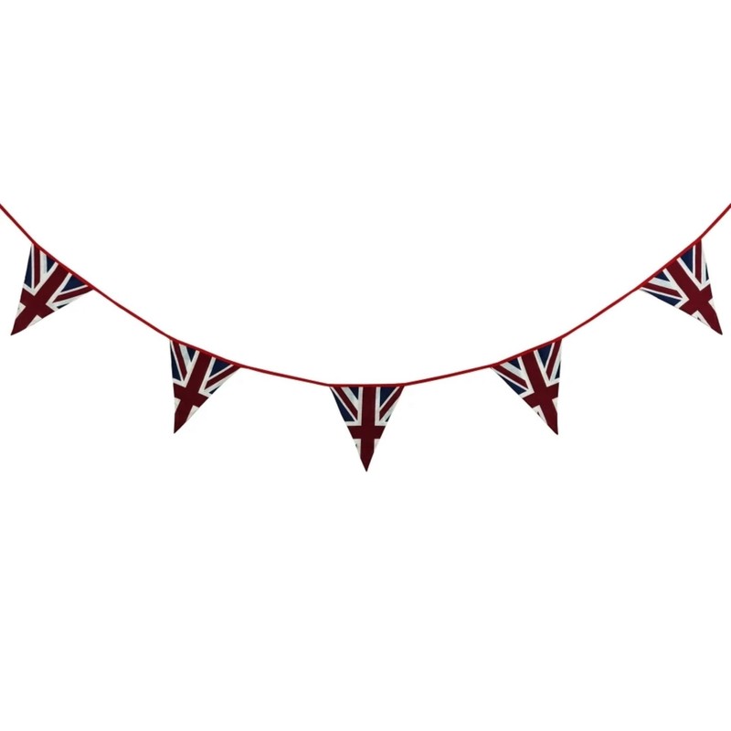 - 🇬🇧 British. Union Jack Bunting: Vintage Style for a Classier Look Vibrant red, white, and blue Union Jack bunting perfect for celebrating British pride and national events.