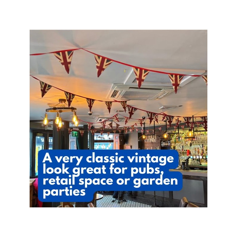 - ⚜️Vintage Design: Featuring the iconic Union Jack flag pattern, this bunting exudes a nostalgic and classic British aesthetic.