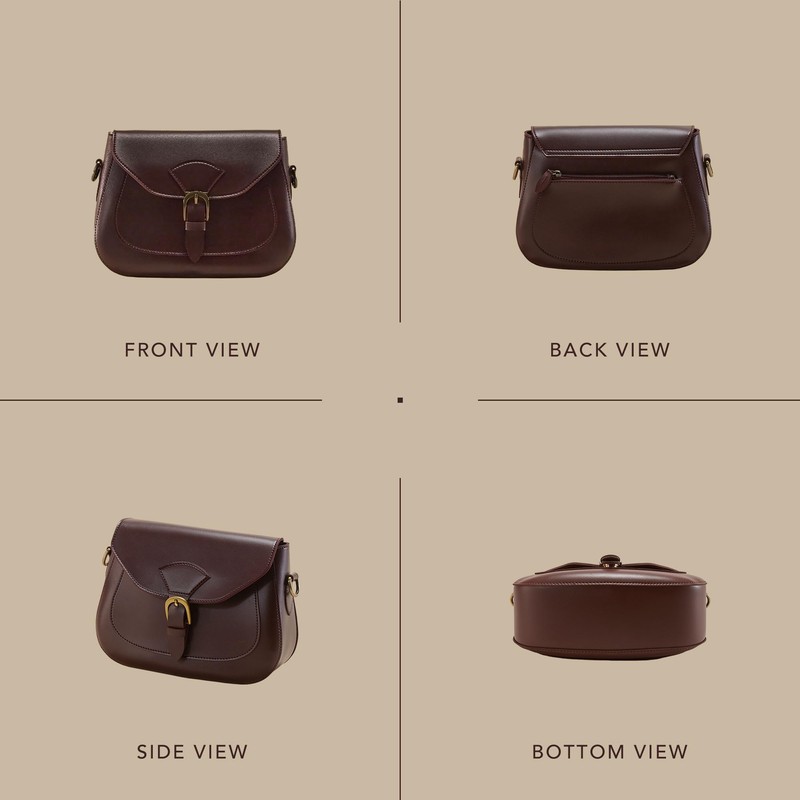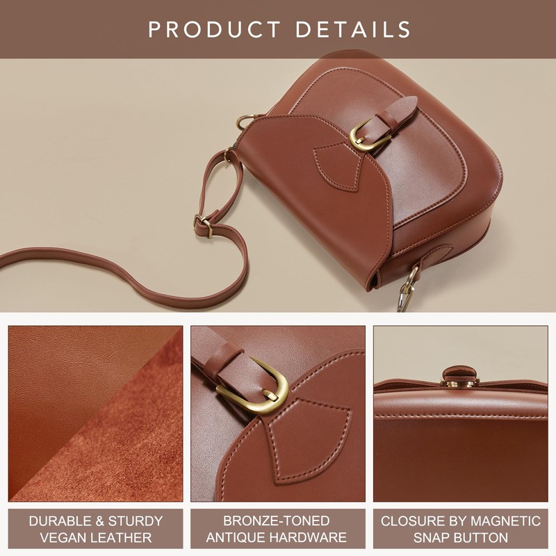 - Vintage crossbody saddle bag with leather strap magnetic fastener on the front flap + zipper closure of opening.