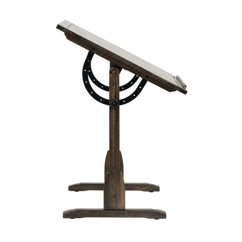 The classic design of the Vintage Wood Drawing/Drafting Table (42"W) by Studio Designs is reminiscent of turn-of-the-19th-century furnishings. It features ample work space on the elegantly distressed wood finish with a built-in pencil groove. The antique finished wood top adjusts in angle from 0 to 90 degrees for versatility. Solid wood frame and metal hardware for durability. The main work surface is 42'' W x 30''D.