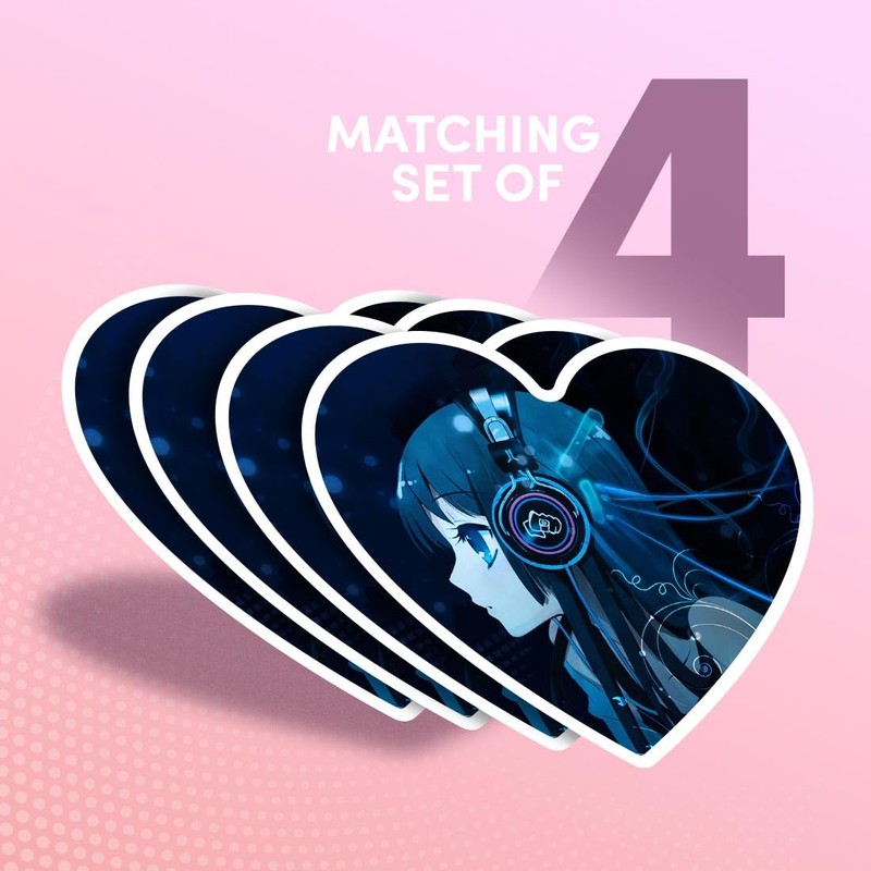 Vinyl Heart Stickers (Set of 4) 10cm - Anime Girl Headphones Technology for Laptops, Tablets, Luggage, Scrap Booking, Fridges #50098