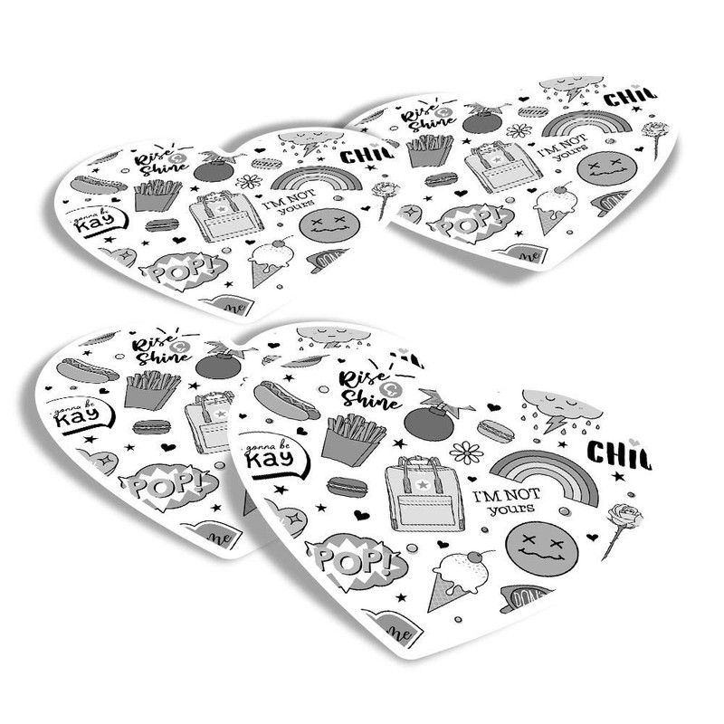 Vinyl Heart Stickers (Set of 4) - BW - Cute Teenage Girls Art Icons Fun Decals for Laptops,Tablets,Luggage,Scrap Booking,Fridges #35908