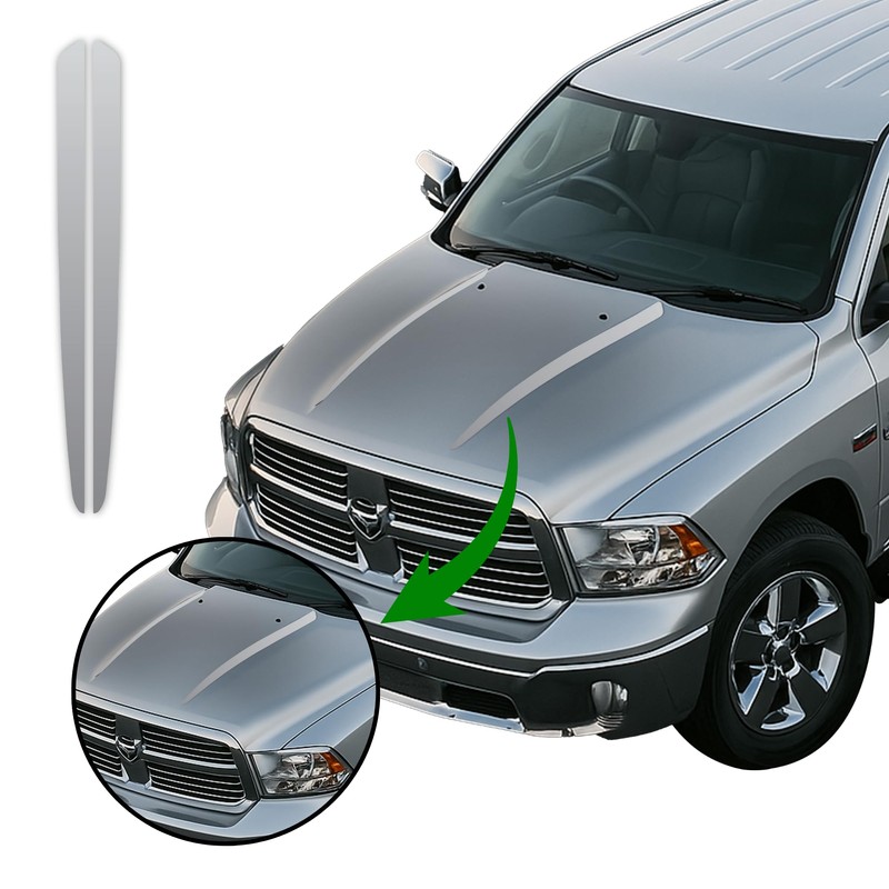 Vinyl Hood Spears Racing Stripes – Fits 2009-2018 Dodge Ram 1500 2500 – Dodge Ram Decals & Stickers by Benini Design Studio – Made in USA – Silver – Avery HP750 High-Performance Vinyl