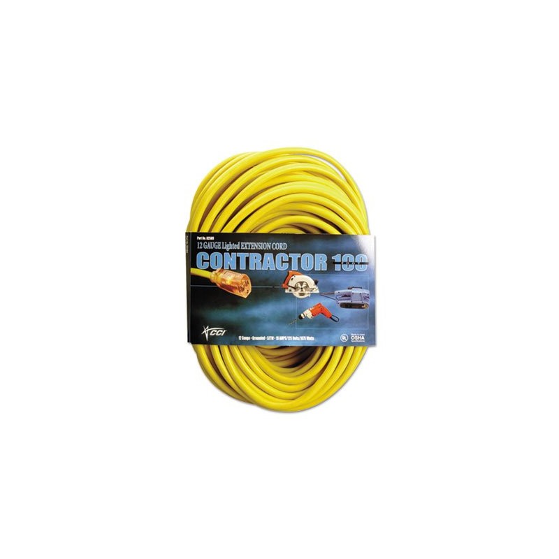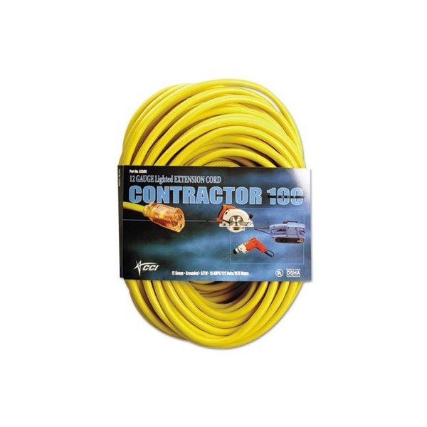 Vinyl Outdoor Extension Cord, 100 Ft, 15 Amp, Yellow