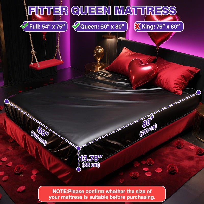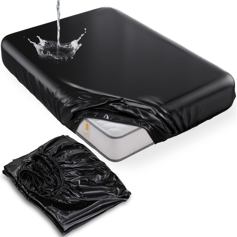 Vinyl Queen Fitted Massage Table Cover with Elastic Band, Fits Beds 80x60 inch Wide for SPA Beauty Tattoo Grafting Eyelash, Waterproof & Oilproof & Reusable, PVC Waxing Mat for Esthetician Bed (Black)