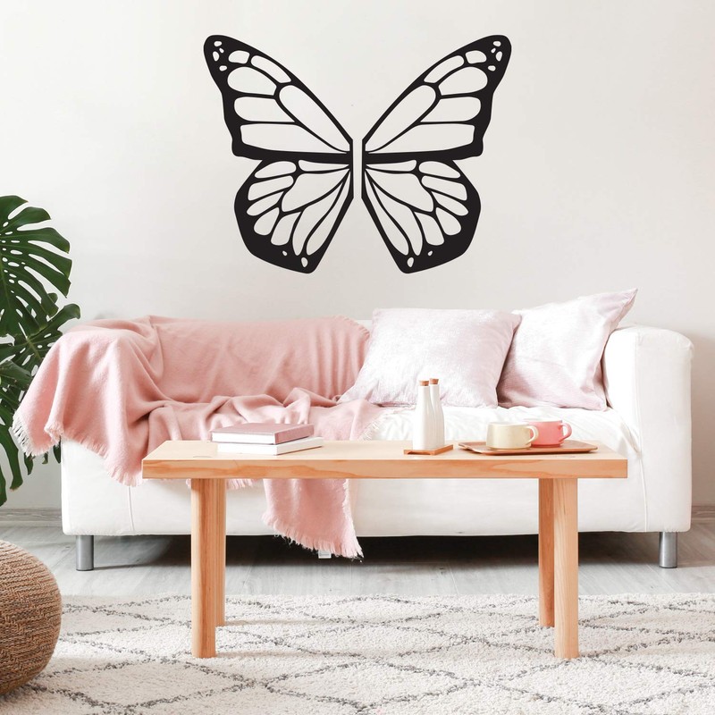 - ? Our high-quality vinyl adhesive decal quote "Butterfly Wings" comes in 35 inches by 45 inches. The pictures are for display and inspiration only. All of our vinyl wall decals are manufactured with premium industrial grade Lutema self-adhesive vinyl.