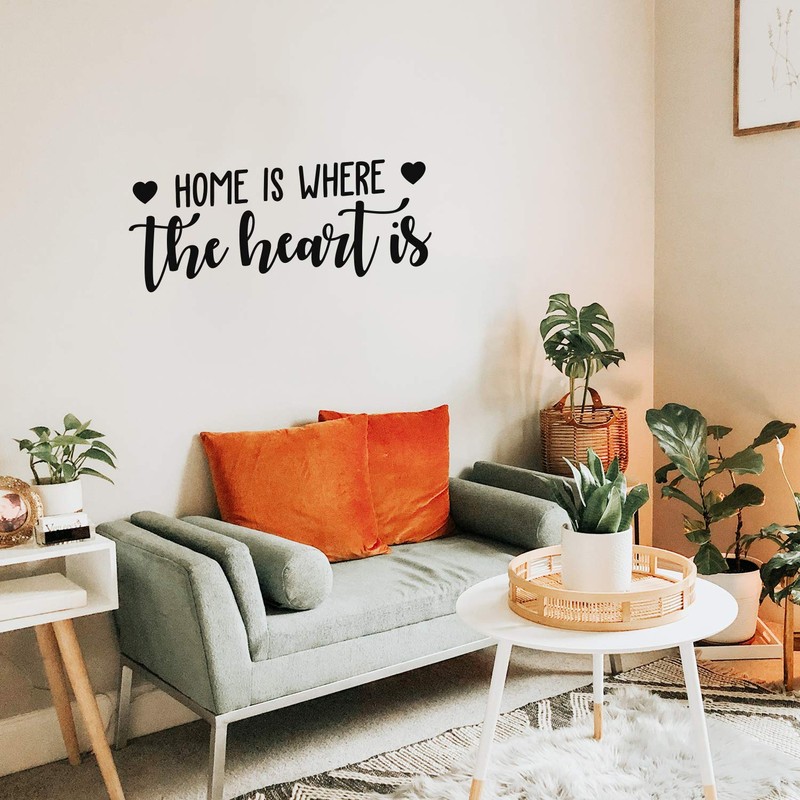 - ? Our high-quality vinyl adhesive decal quote "Home Is Where The Heart Is" comes in 14 inches by 38 inches. The pictures are for display and inspiration only. All of our vinyl wall decals are manufactured with premium industrial grade Lutema self-adhesive vinyl.