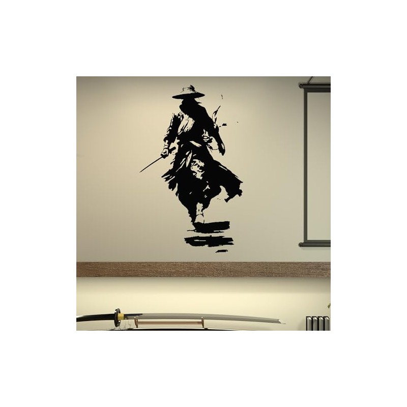 Vinyl Wall Decal Samurai Warrior Silhouette Japanese Armor Katana Stickers Mural Large Decor (L146) Black