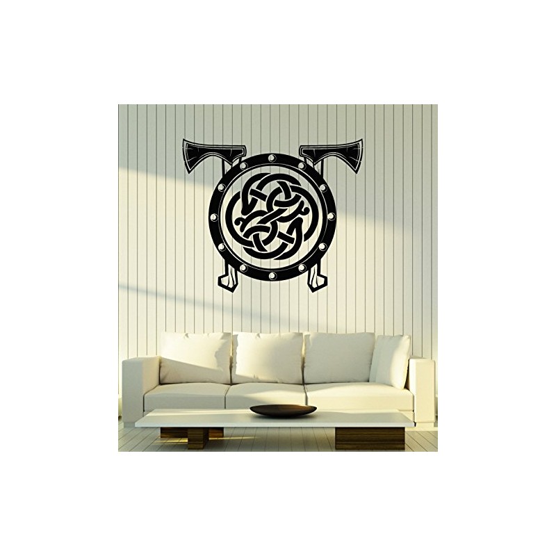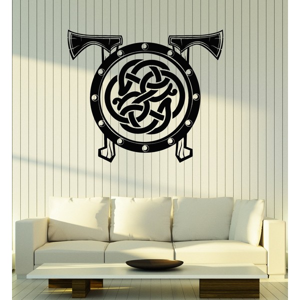 Vinyl Wall Decal Viking Shield Axes Celtic Pattern Warrior Scandinavian Art Stickers Mural Large Decor (ig5083) Black