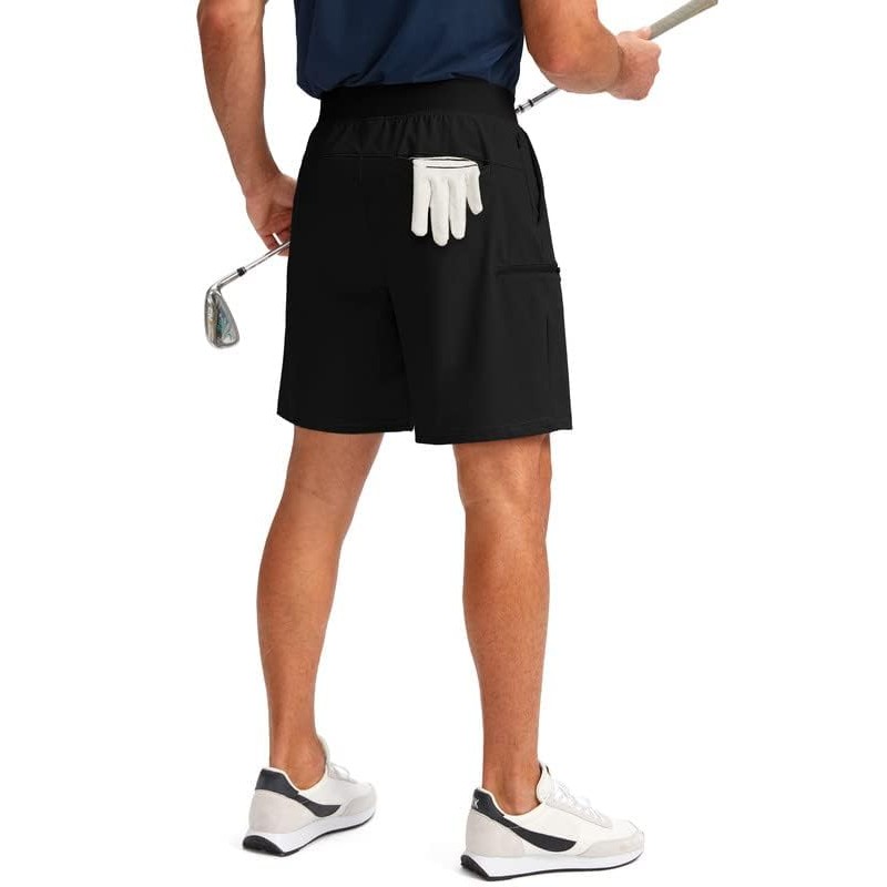 Viodia Men's 7" Golf Shorts with 5 Pockets Elastic Waist Dry Fit Stretch Lightweight Shorts for Men Hiking Casual Athletic Black