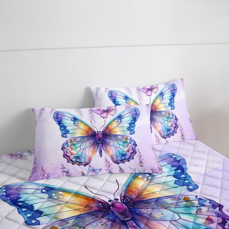 Violet Lavender Butterfly Twin Size Fitted Mattress Pad,Waterproof Fitted Sheet Set,Bedding Quilted Noiseless Mattress Protector Stretches up to 15 Inches Deep,Breathable Bed Mattress Cover