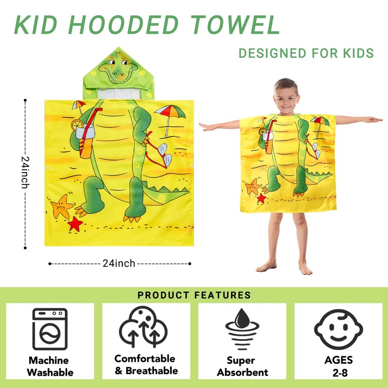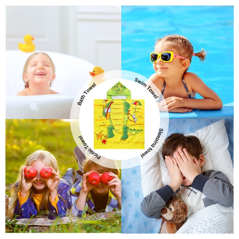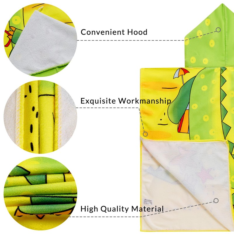 - 【Soft Fabric】This cute hooded bath towels for toddlers are made of microfiber, breathable and comfortable. As the best choice of beach towels for kids, the soft microfiber towels are thick but lightweight, super absorbent, quick dry and sand free, keeping body dry and warm after swimming or shower.