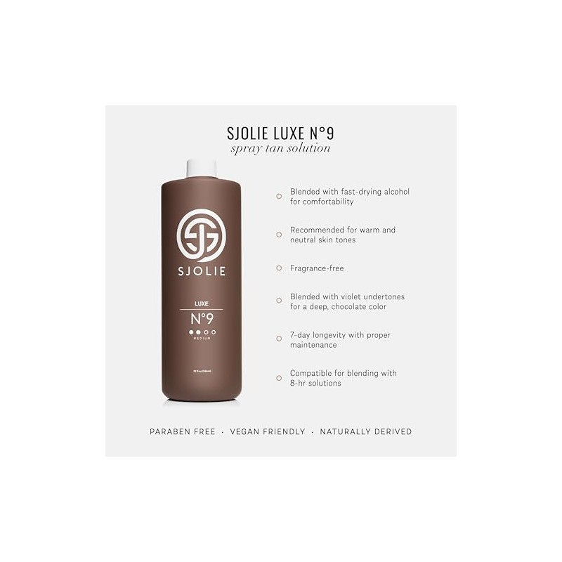 SJOLIE Violet Spray Tan Solution - Luxe 9 - Medium Blend | Sunless Tanning Solution for a Hydrating, Deep Brown Tan (32oz)