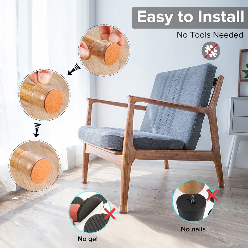 - ✅【Latest Upgrade】Compared with most of the traditional 1mm furniture pads on the market, our chair leg floor protectors are made of 2mm thick silicone, which will never be damaged, durable. The chair leg protectors will not change color when stretched. Inside of the inner sleeves are particles with anti-slip, which will firmly fix the chair and never make the covers fall off. Felt pads at the bottom make your furniture move silently and smoothly along floors without leaving marks and noise.