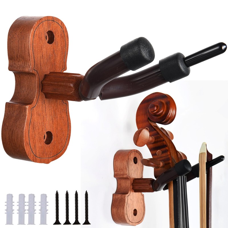 - ♫ EASY INSTALLATION - Easy to install within a few minutes. First, locate the holes and drill 1/4’’ holes, then, put the anchors in the holes. At last, insert the screws to fix the violin hanger. It only takes a few minutes to get a beautiful violin hanger in just a few steps.