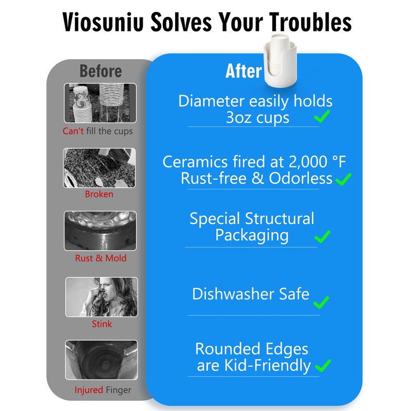 In summary, the Viosoniu 3 oz Original Ceramic Bathroom Cup Dispenser with 5 PLA Paper Cups combines functionality, sustainability, and aesthetics in one compact package. Elevate your bathroom experience with this eco-friendly solution that's perfect for mouthwash, tooth brushing, or a quick coffee fix.