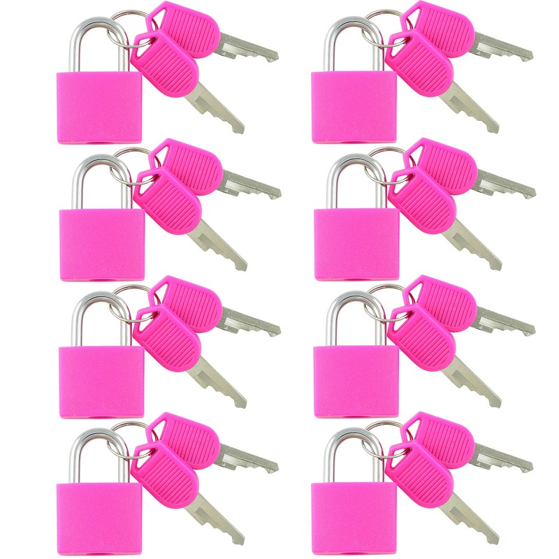 VIP Home Essentials - Small Mini Durable ABS Covered Solid Brass Body Individually Keyed Padlock - 8 Pack Lock Set (Pink)