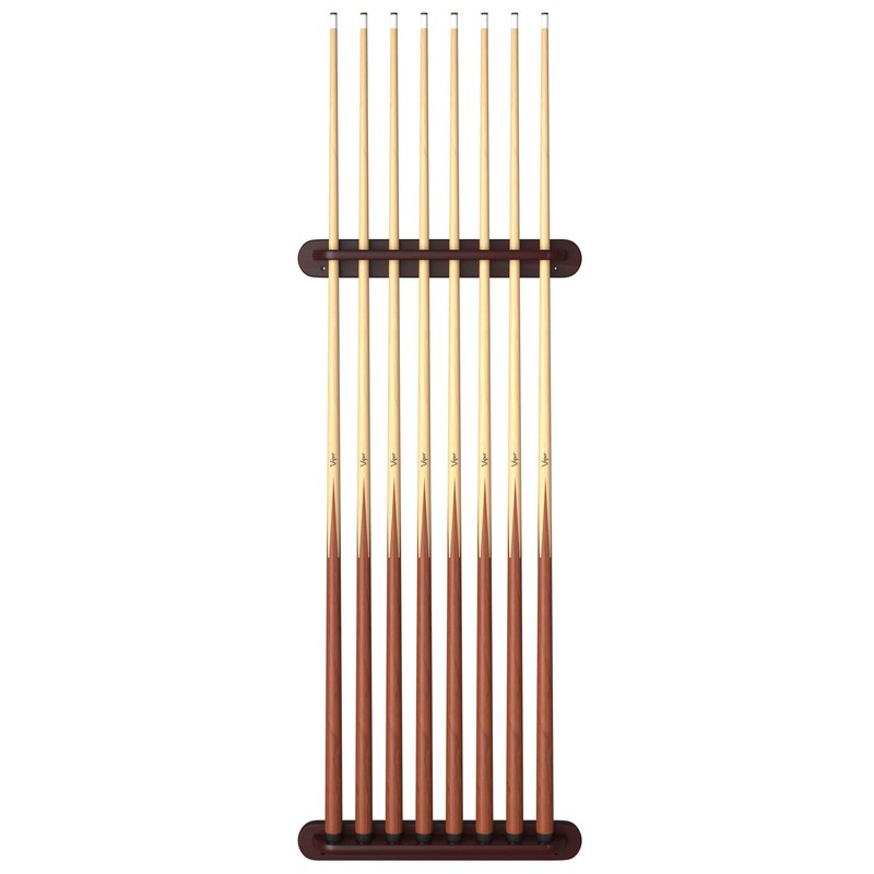 Viper 2-Piece Traditional Wall Mounted Solid Oak Billiard/Pool Cue Rack, Holds 8 Cues, Mahogany Finish