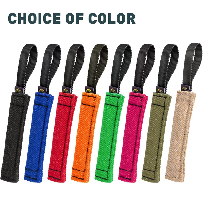 Handcrafted in Europe, this bite tug meets the highest standards of quality and durability. Perfect for developing a puppy’s bite strength, engaging prey drive, or advancing complex training techniques, this professional-grade tool stands up to the demands of elite training. Enhance your dog’s training experience with a tool that combines functionality with style, available in a variety of vibrant colors to suit your training needs.