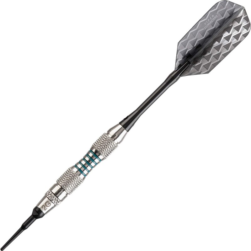 Viper Bobcat Adjustable Weight Soft Tip Darts with Storage/Travel Case: Nickel Silver Plated, Light Blue Rings, 16-18 Grams
