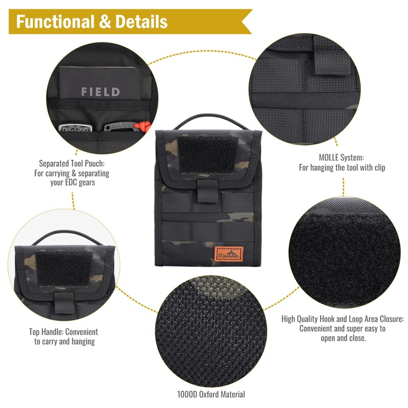 VIPERADE VE12 Tactical Folding Bag, Molle Tool Bag, Tri-Fold Tool Bag, Useful EDC Pocket Organizer for Outdoor and Daily Use (Black Camouflage)