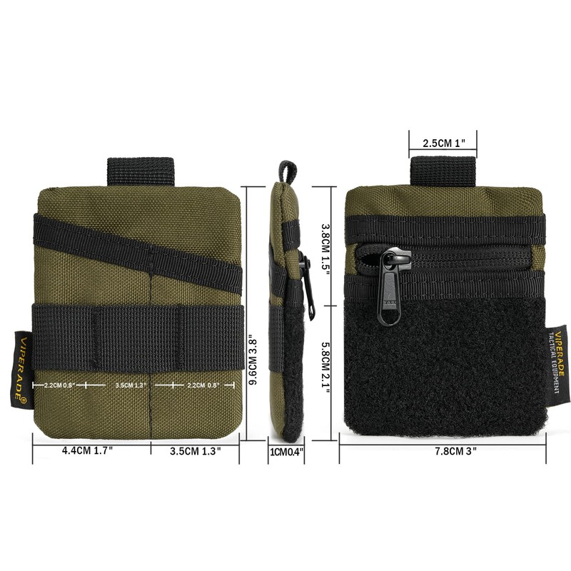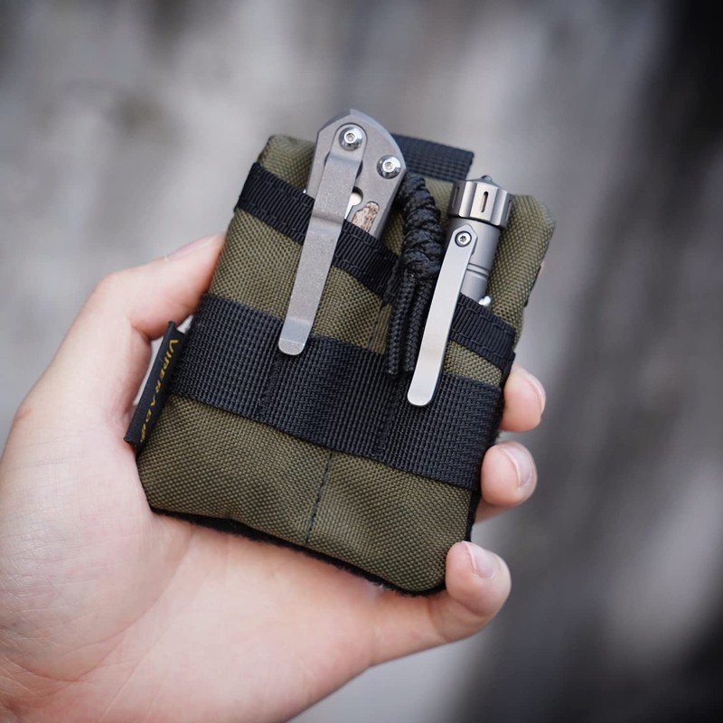 - Mini EDC pockets organise with 3 pockets: this mini EDC bag has 1 zip pocket and 2 slip pockets as well as 1 MOLLE webbing. Zip pocket can be used as a coin compartment for loading coins/cards or mini EDC items. Slip pockets for mini EDC tools such as mini torches, pocket knives, folding knives, tool pliers, pens or other mini EDC multi-tools. The Molle webbing for tools with pocket clips expands the usable space of the Mini-EDC pouch.