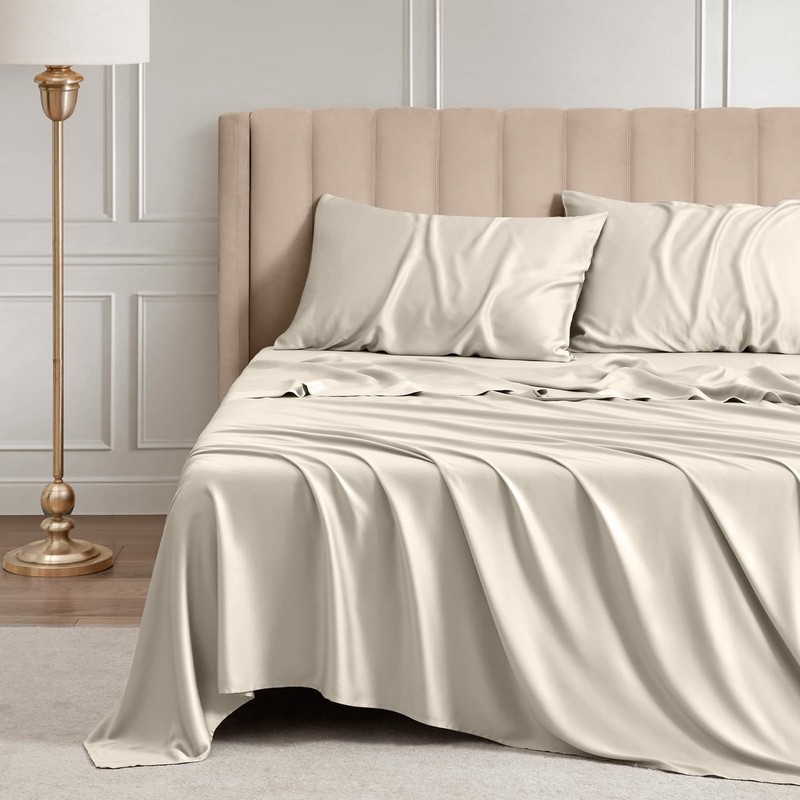 - Silky & Soft: Our luxury sheets set are made from 100% Rayon Derived from Bamboo, it has a delicate and soft texture, feels silky and smooth, and brings a refreshing skin experience. Its natural material is not only gentle and skin-friendly, but also effectively reduces friction, and is particularly friendly to hair, reducing the trouble of hair tangling after getting up in the morning