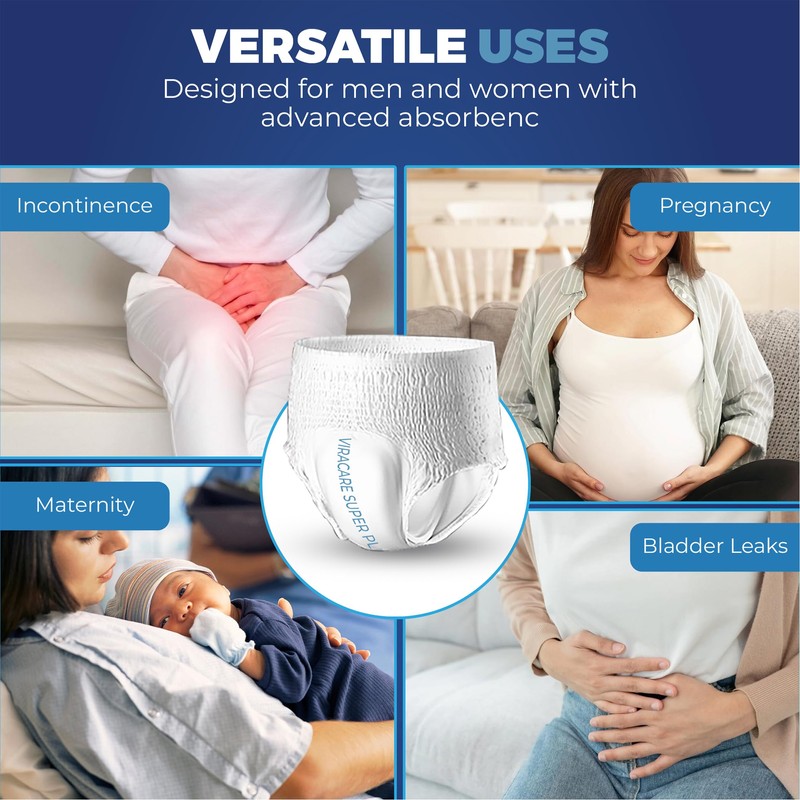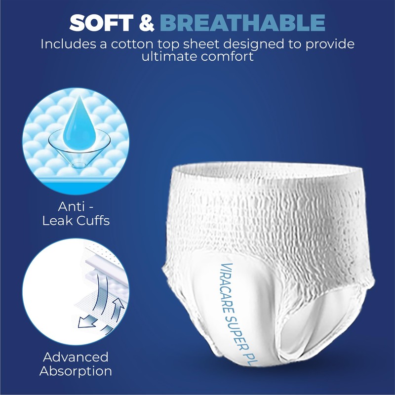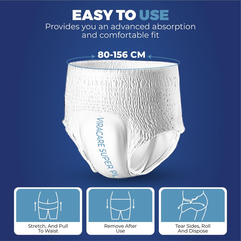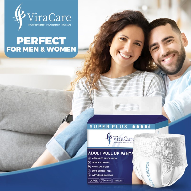 ViraCare 12 x Super Plus Incontinence Pants Women & Men | Adults Nappies | Advanced Absorption and Soft-Stretch Waistband | Adults Pull Up Pants | Waist Size Large 80-156 cm |(1 Pack of 12, Large)