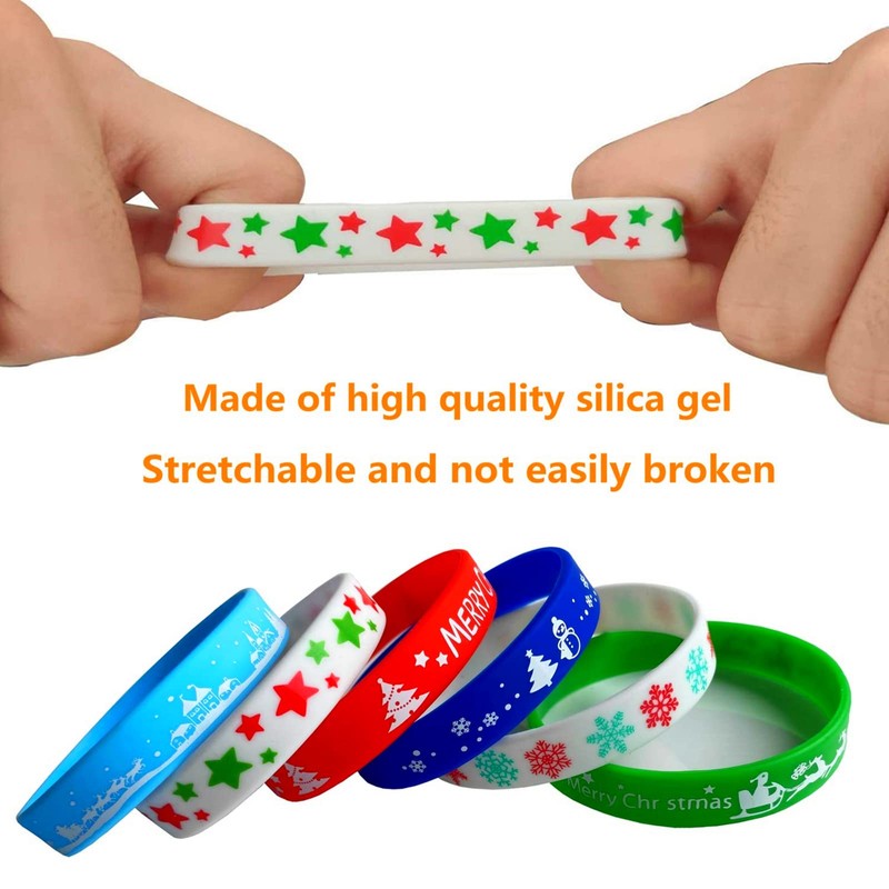 - Material: These Christmas wristbands are made of silicone material, soft and flexible silicone wristbands reliable material ensures to use for a long time and will not irritate skin, tough enough to withstand everyday wear, easy to put on and take off