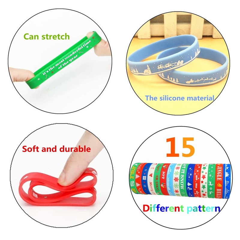 - Package includes: 60 pieces rubber bracelets in 15 Christmas styles designed, each style has 4 pieces, match any party theme and any clothes of color, enough quantity for your use and replacement , meet different needs in daily life