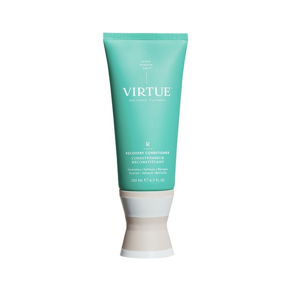 What are the benefits and features of Virtue Recovery Conditioner 200g?- Reconstructs frayed cuticles and brittle ends.