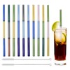 VirtuGro 10PCS Glasstrohhalme Trikolore Strohhalme Glas Glasstrohhalme Lang Trinkhalme Glasröhrchen Waschbar mit 2 Reinigungsbürsten Ideal Für Smoothie Milchshake Cocktail Säfte