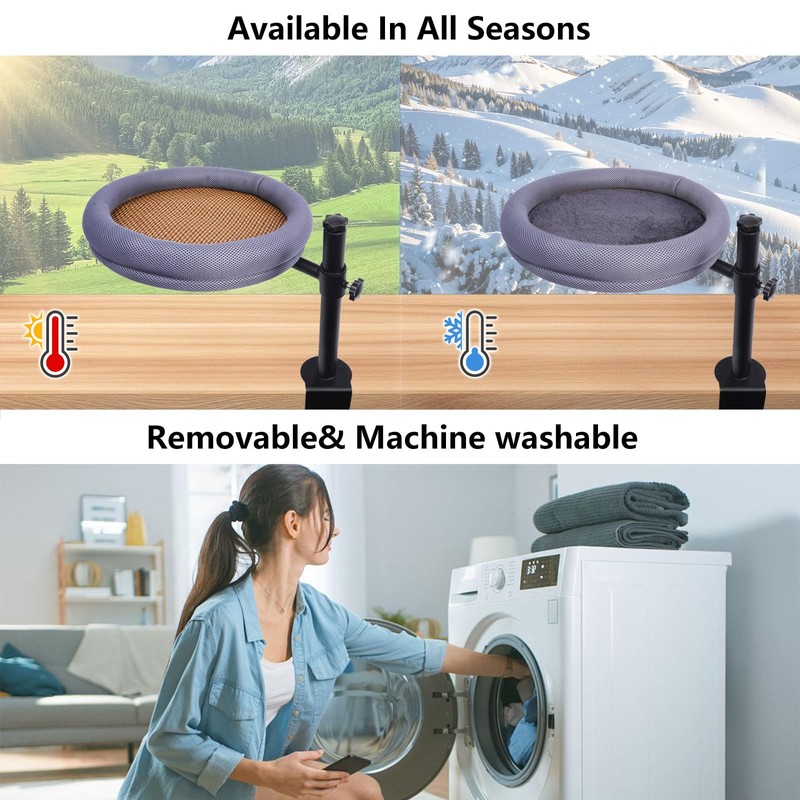 - Double Sided Cushion for All Seasons: The desk nest cat bed comes with a double-sided cushion. It has two sides, one side is plush and warm, perfect for fall and winter. The other side is bamboo woven, cool, and perfect for spring and summer. The cat mat is machine washable and easy to clean. Whether it is summer or winter, this table cat bed can provide your cat with a comfortable and clean resting place