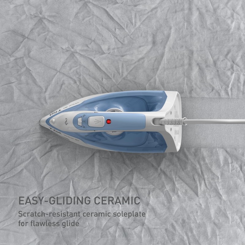 • Durable Ceramic Soleplate: Features T-Fal's iconic scratch-resistant ceramic soleplate for a smooth, effortless glide and long-lasting durability, ensuring perfect ironing results every time.