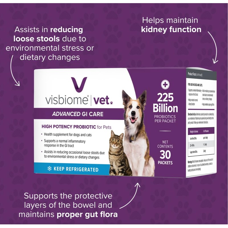 Visbiome® Vet Advanced GI Care Probiotic for Dogs & Cats – 225B CFU, 8-Strain Formula – Veterinary Recommended, Clean Label Certified – 30 Packets