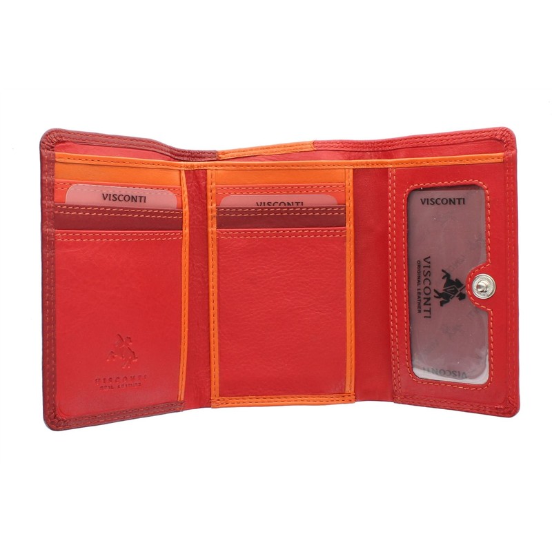 Visconti Rainbow Collection Leather Biola Purse RFID Blocking RB39 Red Multi