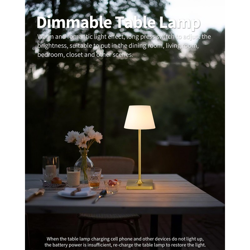 - Portable Wireless Design The LED table lamp provides a cozy and romantic atmosphere with its elegant design and soft light. It can be used in many places, e.g. in cafes, restaurants, bars, toilets, campsites and outdoor events as it can be held in the hand and has a medium weight. This versatile, portable, waterproof, wireless desk lamp is a good choice.