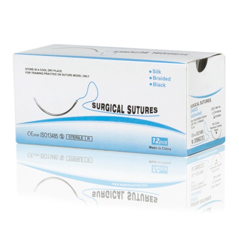 The suturing threads have 3/8 circled, round 18mm reverse cutting needles to provide maximum strength and accuracy. The stainless steel curved needle comes with 75cm long silk braided filament thread made from high quality material that resists repeated bending and ensures optional knot integrity. The needles are individually packed, sealed and sterilized.